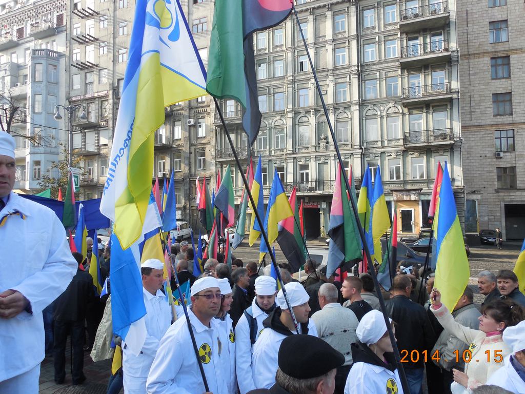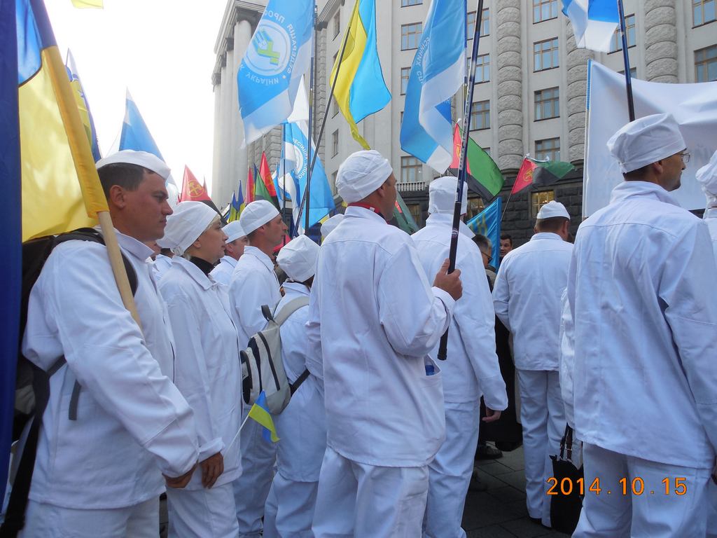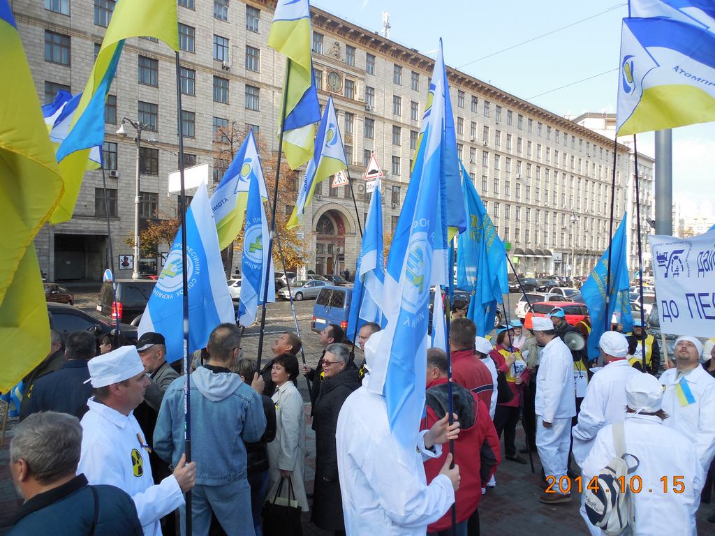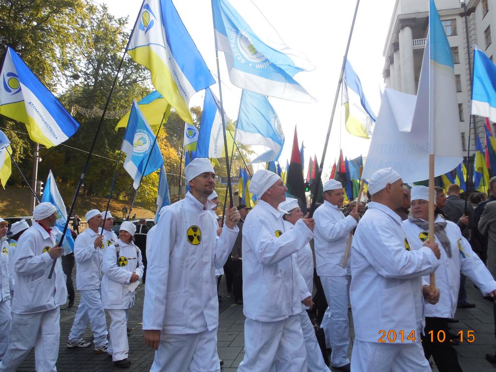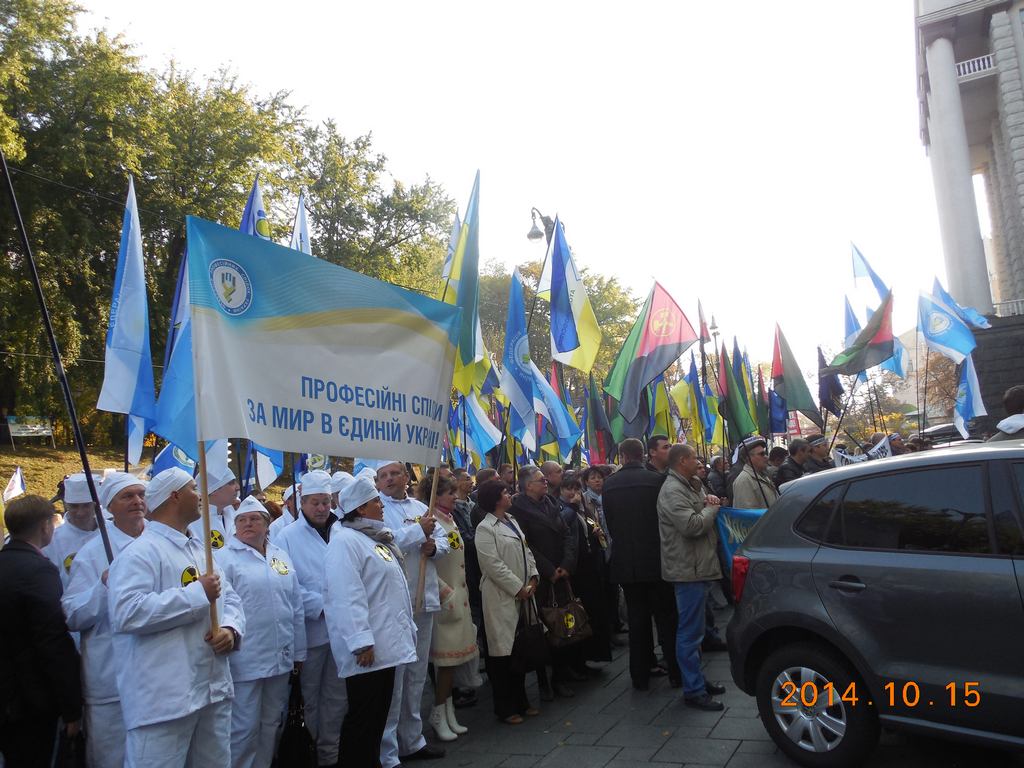 Під будівлею Кабінету Міністрів України зібралося декілька тисяч представників профспілкових організацій різних галузей, у тому числі атомно-промислового комплексу.