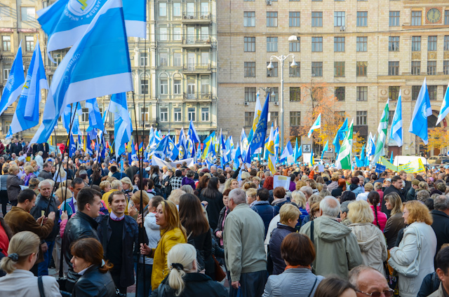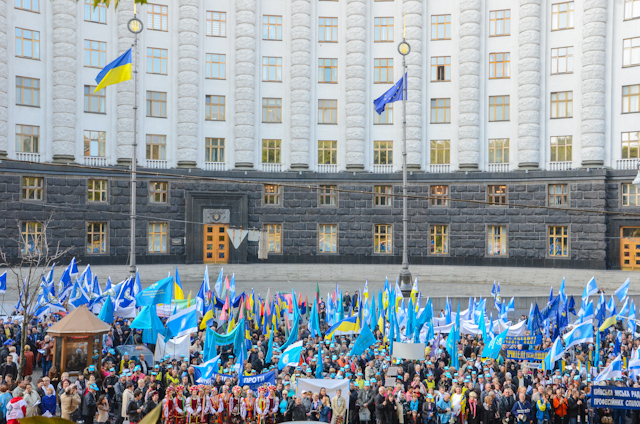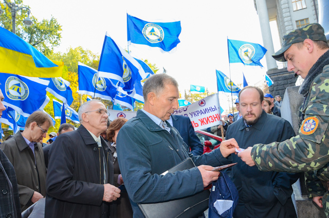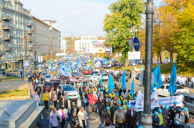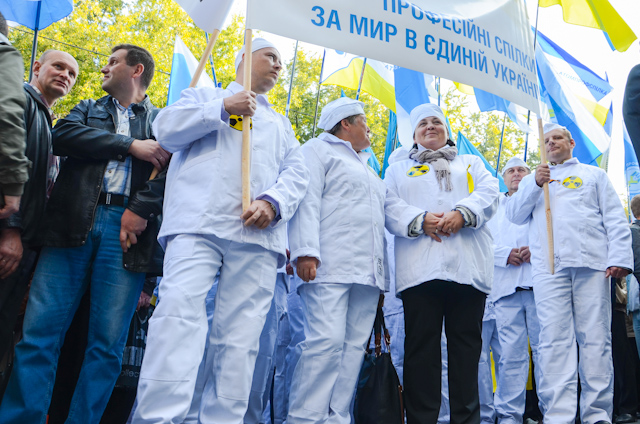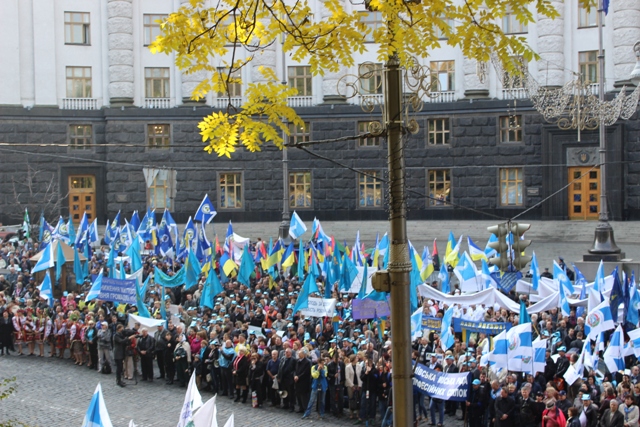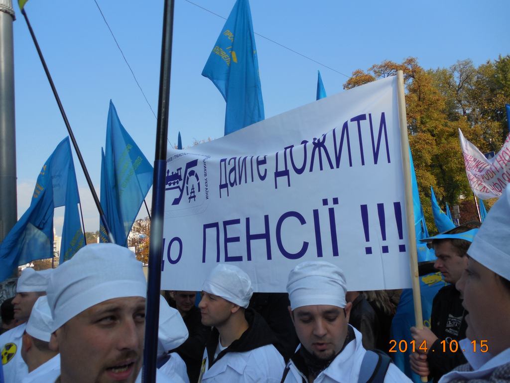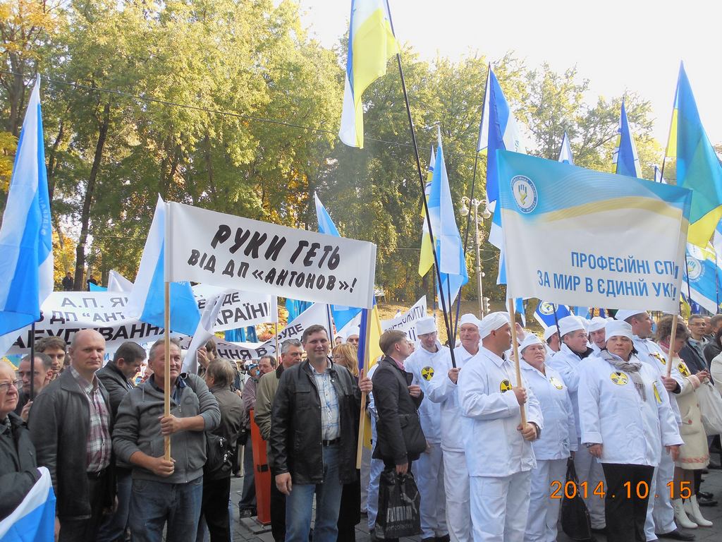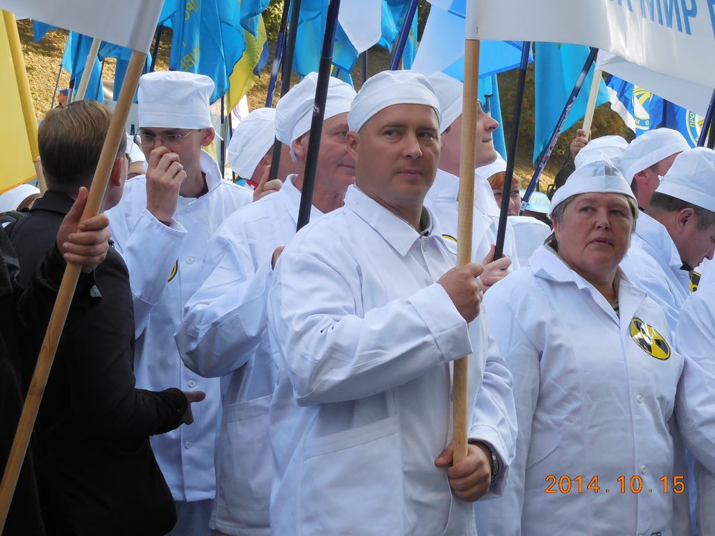 Під будівлею Кабінету Міністрів України зібралося декілька тисяч представників профспілкових організацій різних галузей, у тому числі атомно-промислового комплексу.