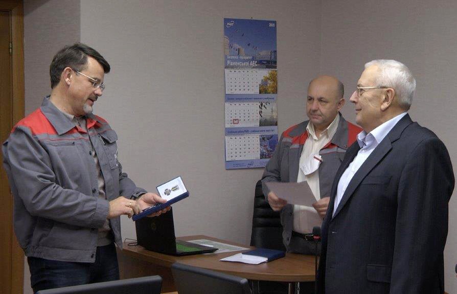 Генеральний директор Рівненської АЕС Павло Яремович Павлишин з нагоди ювілею привітав заступника генерального директора з економіки та фінансів атомної електростанції Бондаренка Володимира Миколайовича та вручив йому відзнаку ДП НАЕК «Енергоатом» — нагрудний знак «Заслужений працівник атомної енергетики».