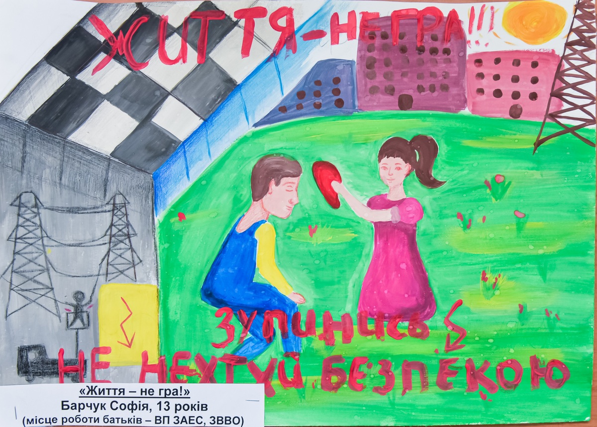 Служба охорони праці Запорізької АЕС спільно з первинною профспілковою організацією станції підвели підсумки щорічного конкурсу дитячого малюнка «Охорона праці очима дітей», який проводився в рамках Всесвітнього дня охорони праці. В конкурсі брали участь 39 учасників, які представили на суд конкурсної комісії 44 малюнка.