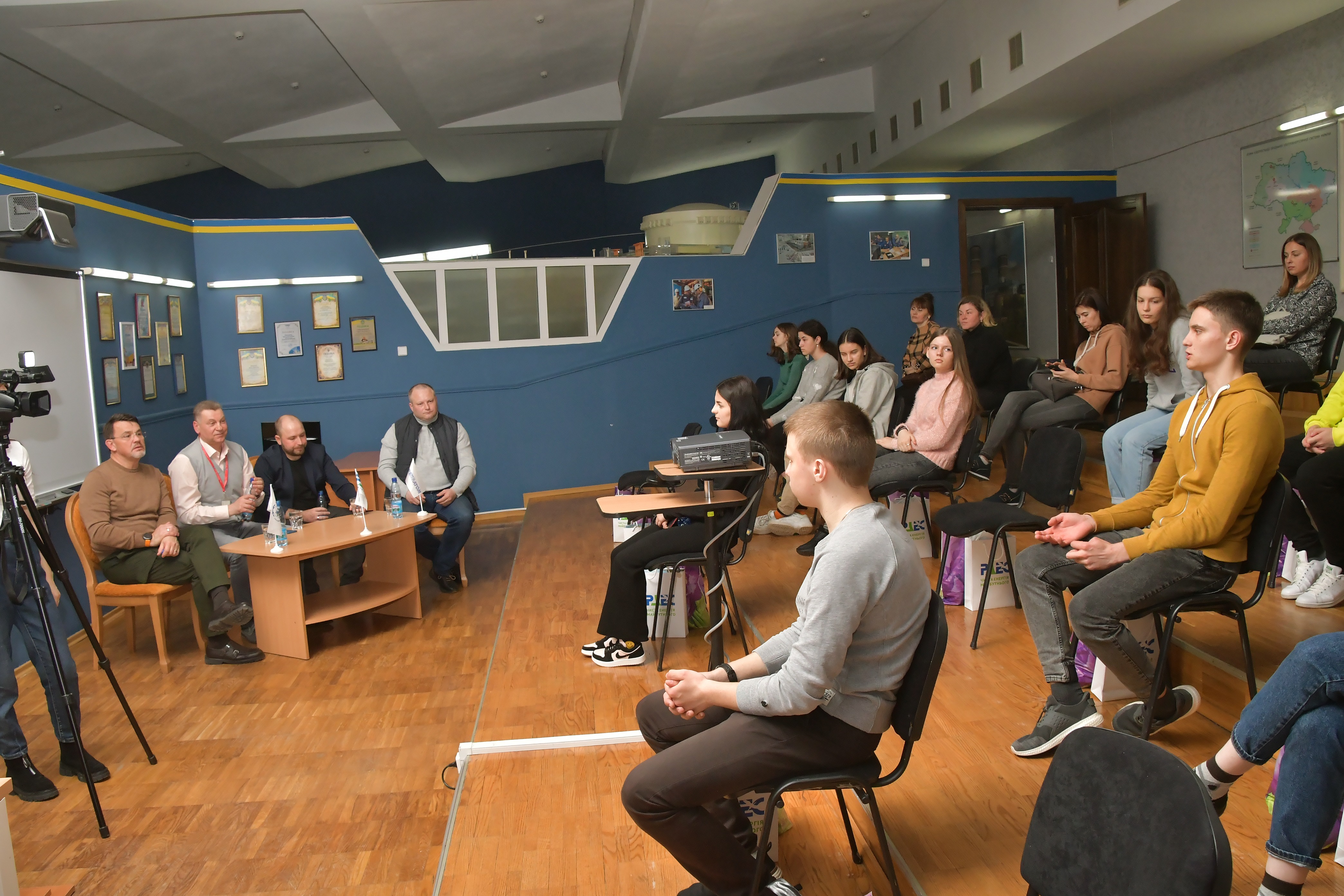 Генеральний директор РАЕС Павло Павлишин і його помічник-начальник УПАГР Андрій Забродоцький, голова Профспілки електростанції Іван Мельник та голова Організації молоді Євгеній Бураков розповіли про роботу основного бюджетоутворюючого підприємства області, напрями роботи з молоддю, соціальні та спортивні заходи, які проводяться електростанцією або за її підтримки. Старшокласники цікавилися можливістю долучитися до занять, де можна освоїти навички поводження зі стрілецькою зброєю, а також до навчання із надання домедичної допомоги. Також спілкувалися на теми музики, книг та спогадів з дитинства.