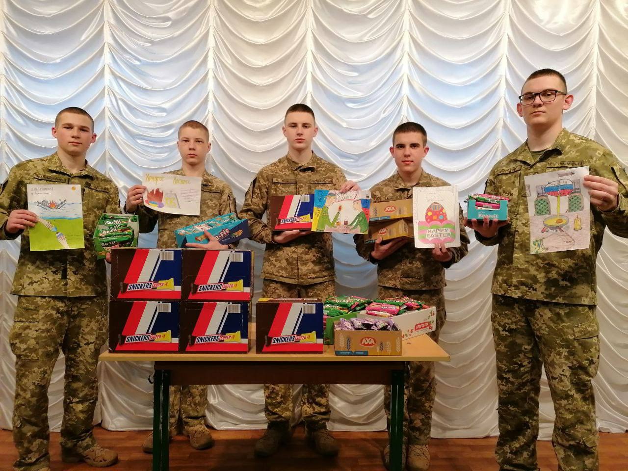 Курсанти та викладачі ліцею закупили енергетичні батончики та підготували великодні привітання і малюнки, а колектив ВРГіЗМІ за частину коштів, зібраних під час акції «Від серця до серця», яка нещодавно проходила на ХАЕС, придбав протизастудні та знеболювальні препарати, у яких завжди є потреба на фронті.