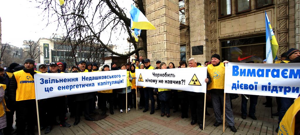 Члени Атомпрофспілки, учасники безстрокової акції протесту, яка розпочалася 28 листопада 2019 року під стінами будівлі Міністерства енергетики та захисту довкілля України, виступають з вимогою поновити Юрія Недашковського на посаді президента ДП «НАЕК «Енергоатом» - оператора всіх діючих атомних електростанцій України.