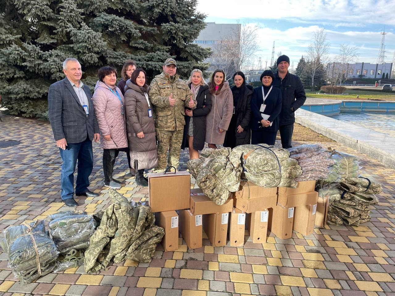 Цього ж дня працівники ПАЕС вручили військовим, які наразі відстоюють територіальну цілісність України під Бахмутом та Кураховим, а на початку війни боронили Вознесенщину, два квадрокоптери DJI Mavic 3 Fly, потужний генератор, два комплекти безкаркасних нош, кровозупинні бандажі та три комплекти зимового одягу і взуття. Орієнтовна сума допомоги склала 280 тис. грн. Ці кошти зібрали південноукраїнські атомники, беручи участь в акції «Допомога захисникам України».