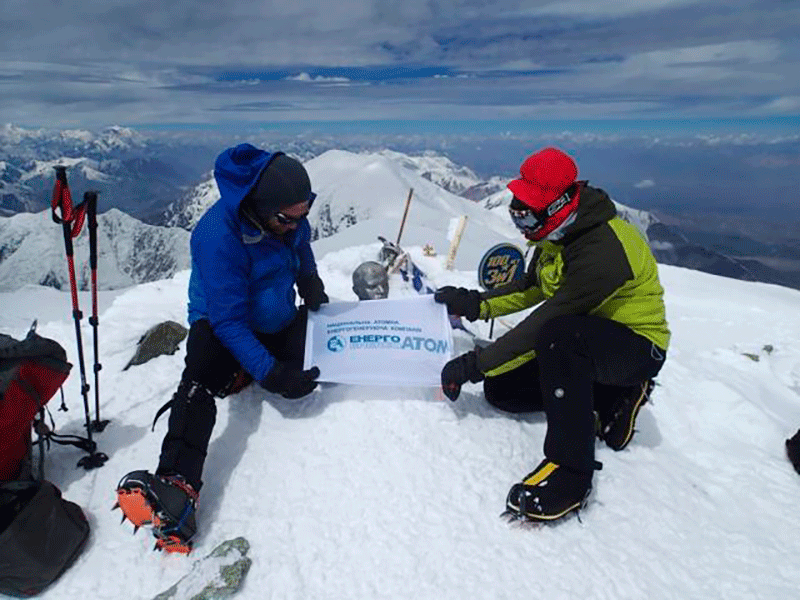 Після неймовірних фізичних і моральних зусиль Олександр зумів піднятись на перший в його особистому заліку семитисячник. На вершину він доставив два прапори – державний та ДП «НАЕК «Енергоатом». Урочисту мить їх підняття допомогли засвідчити представники інших експедицій, які в цей момент дістались вершини з протилежного боку. На своєрідну фотосесію було обмаль часу, бо дув пронизливий з морозом вітер та сліпили палючі сонячні промені.