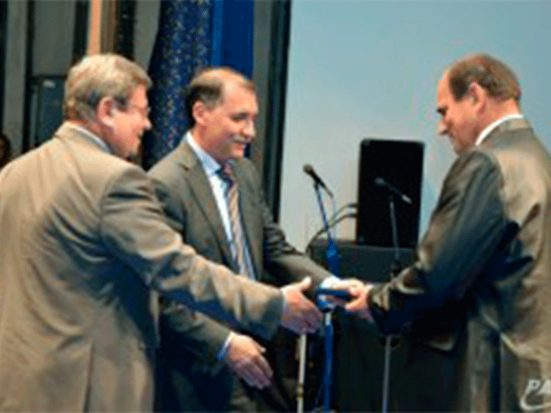 нагороду від НАЕК "Енергоатом" вручає віце-президент компанії Айдин Айсін та голова профкому НАЕК «Енергоатом» Олексій Лич