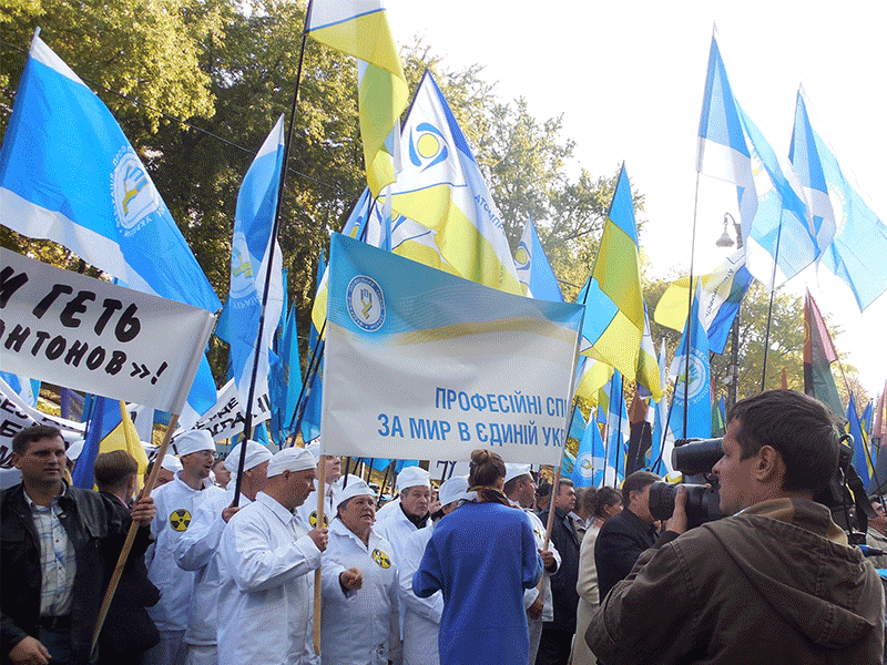 Під будівлею Кабінету Міністрів України зібралося декілька тисяч представників профспілкових організацій різних галузей, у тому числі атомно-промислового комплексу.
