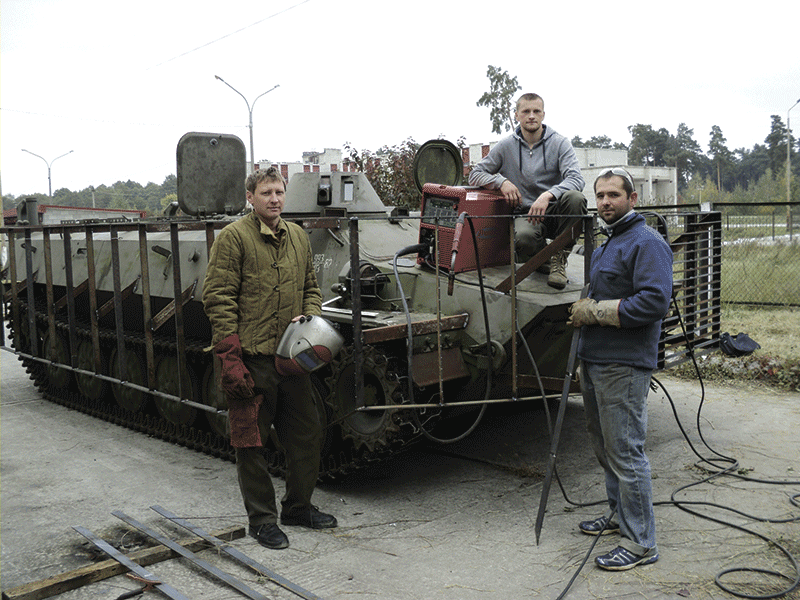 Для модернізації тягача спеціалісти фірми використовують сучасне зварювальне обладнання. У кожного своє технологічне завдання. Над відновленням багатоцільового транспортера із легкою бронею поряд із технічним директором Миколою Козачуком трудяться Сергій Бондарчук, Сергій Кучерський, Олександр Капуш, Валерій Божик, Богдан Омелянчук. У ремонті паливної системи допоміг слюсар транспортного цеху Михайло Коінов, а електрообладнання — начальник лабораторії уніфікованого комплексу технічних засобів та програмно-технічного комплесу цеху теплової автоматики та вимірювань Хмельницької АЕС Олександр Гульчук.