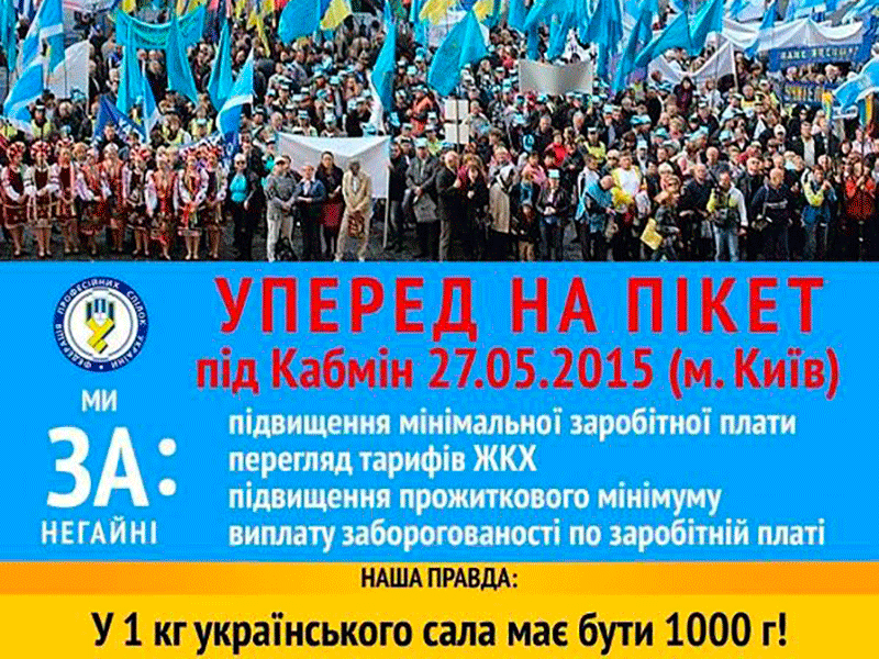 У пікетуванні братимуть участь профспілкові активісті, керівники галузевих Профспілок - членських організацій ФПУ, усі небайдужі громадяни.