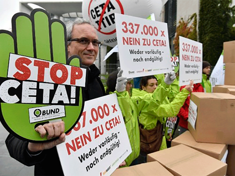 Что интересно, во многих государствах-членах растет и политическая оппозиция CETA при поддержке демонстраций и действий. Политические институты и партии были очень активными в последние дни, заявляя, что они выступают против CETA, а верхняя палата парламента Ирландии, Сенат, проголосовала за отказ от CETA. Политическая оппозиция государств-членов соглашению CETA имеет важное значение, поскольку оно должно быть единогласно одобрено всеми странами ЕС, прежде чем его можно будет ратифицировать.