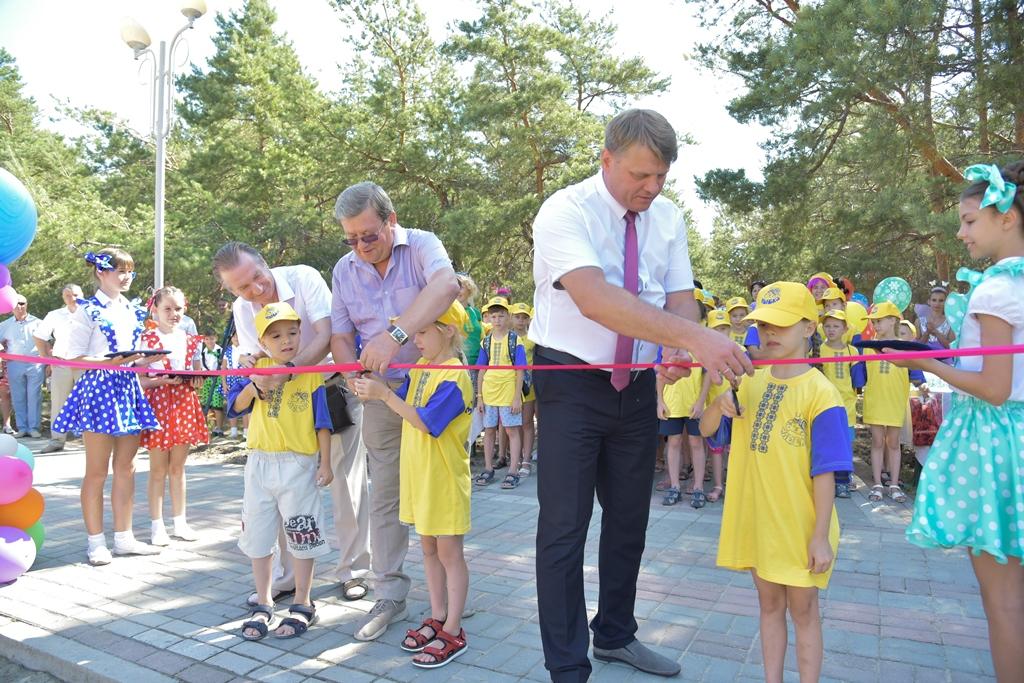 На святковому заході з відкриття нового дитячого майданчика були присутні: заступник голови Атомпрофспілки Олексій Лич, генеральний директор Запорізької АЕС Олександр Остаповець та голова профспілкового комітету ВП ЗАЕС Микола Захаров. Та найголовнішими були діти з пришкільного табору «Усмішка», які у яскраво-жовтих футболках і кепках, з різнокольоровими повітряними кульками, більш за все чекали на відкриття майданчика «Ігрове містечко».