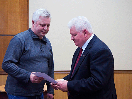 Почесні нагороди герою вручили генеральний директор ВП ХАЕС Микола Панащенко та представники служби надзвичайних ситуацій.