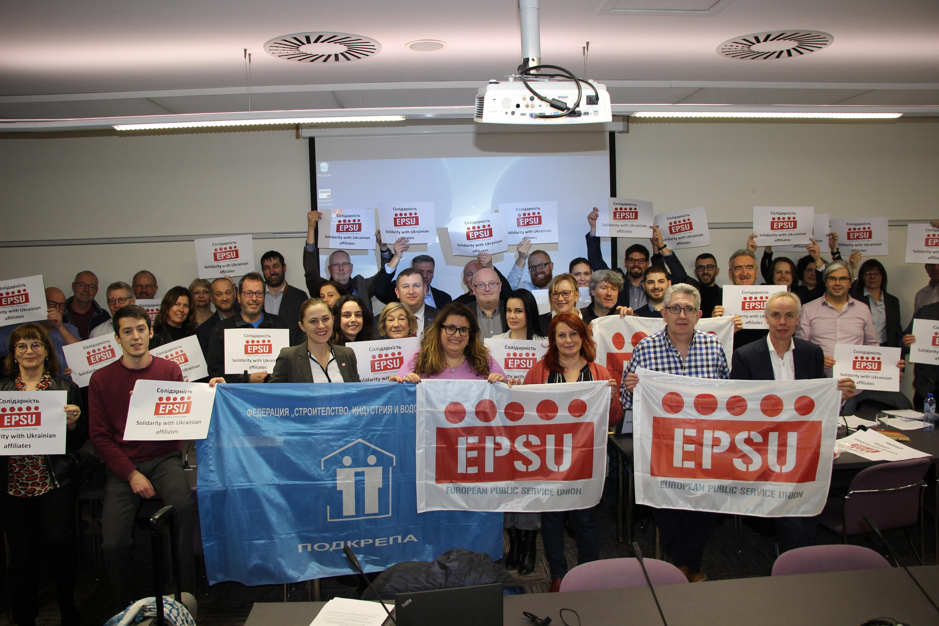 На знімку: Робоча група ЄФПГО демонструє солідарність з українськими працівниками.