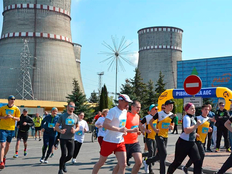 Участие в соревнованиях, которые проходили на двух дистанциях 5 и 10 км, приняли не только профессиональные бегуны, но и спортсмены-любители из городов-суптникив РАЭС и ХАЭС, Ровно, пгт. Владимирца и Томашгорода. Особенностью забега стало то, что его участники стартовали и финишировали на центральной площади перед проходной Ровенской АЭС, а маршрут пролегал вокруг атомной станции, в буквальном смысле – под градирнями. Генеральный директор РАЭС Павел Павлишин также присоединился к забегу