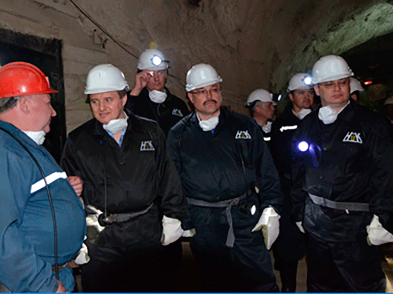 На Новоконстантиновской шахте Владимир Демчишин спустился в шахту, где его ознакомили с особенностями технологического процесса добычи урановой руды, и обсудил с представителями руководства Кировоградской ОГА и комбината перспективы развития уранодобывающей отрасли.