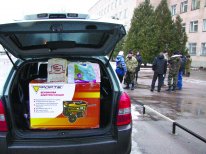 Закуплені речі разом з маскувальними халатами, сітками, продуктами харчування від чернігівського обласного волонтерського центру, який працює при військкоматі, було завантажено в автобус, що перевозив бійців з ротації у зону бойових дій. Священик української православної церкви благословив усіх бійців, вручив їм іконки-обереги.