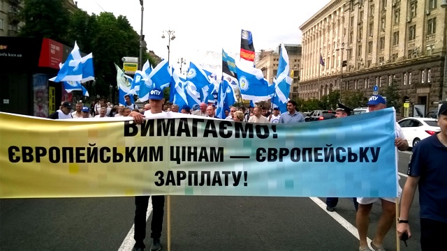 Зокрема Григорій Освоий зазначив, що влада має вирішити проблему тарифів і підвищити заробітну плату. «Сьогодні нас покликала у похід справа тарифів, - заявив він. - Ми змусимо уряд та парламент розібратися в тарифах. Ми сьогодні передамо свої вимоги і пропозиції Прем'єр-міністрові Володимиру Гройсману і народним депутатам. Депутати не мають йти на канікули, доки вони не вирішать це питання. Ми готові блокувати Верховну Раду. Заробітна плата повинна бути піднята до рівня фактичного прожиткового мінімуму. Мінімальна зарплата повинна складати 3 тисячі гривень, середня – 8-10 тисячі гривень».