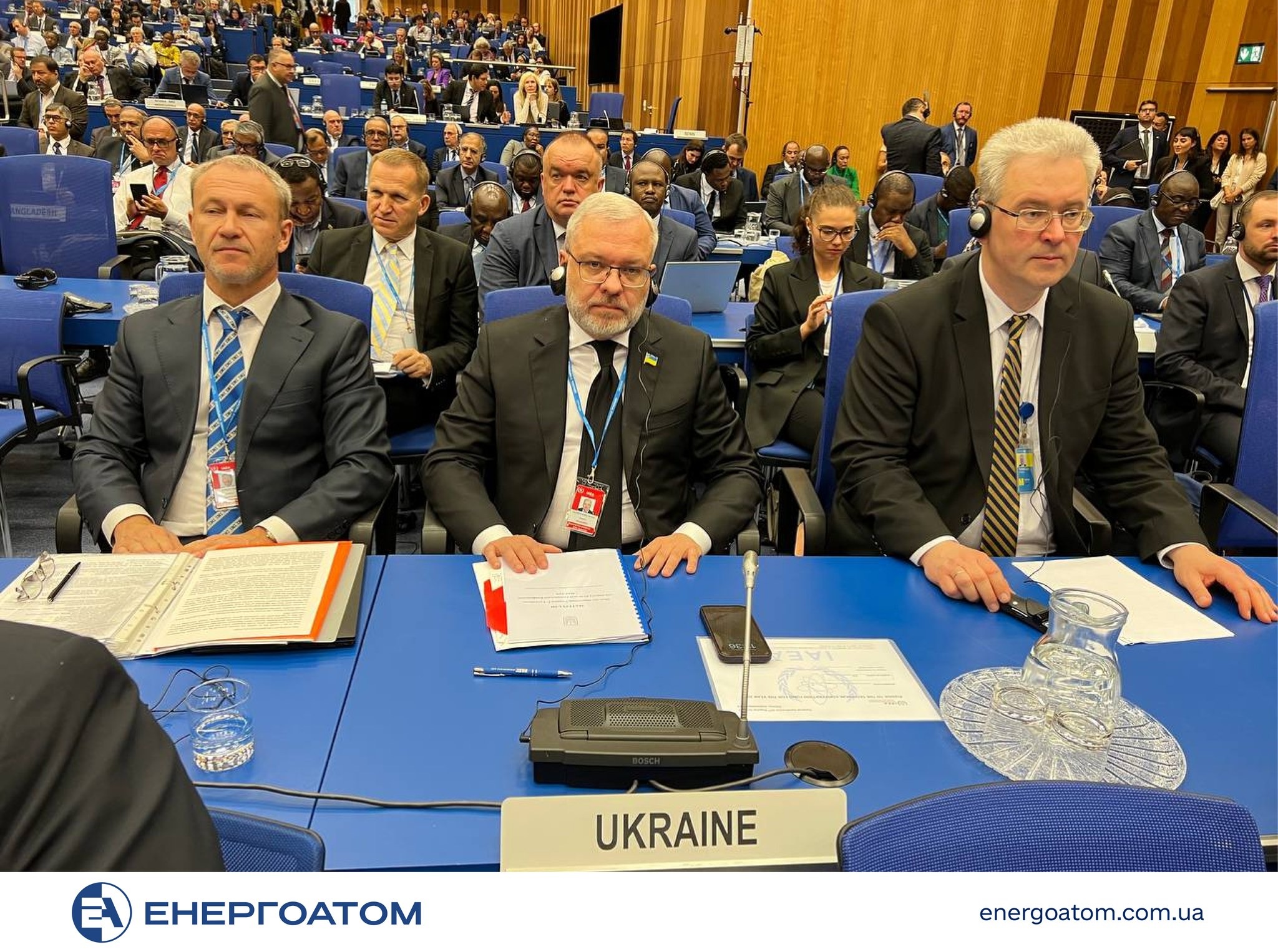 Українська делегація на чолі з міністром енергетики Германом Галущенком бере участь у 67-й сесії Генеральної конференції МАГАТЕ. До складу делегації також увійшли президент ДП «НАЕК «Енергоатом» Петро Котін, в. о. Голови Держатомрегулювання Олег Коріков та перший заступник Голови Державного агентства з управління зоною відчуження Андрій Тимчук.