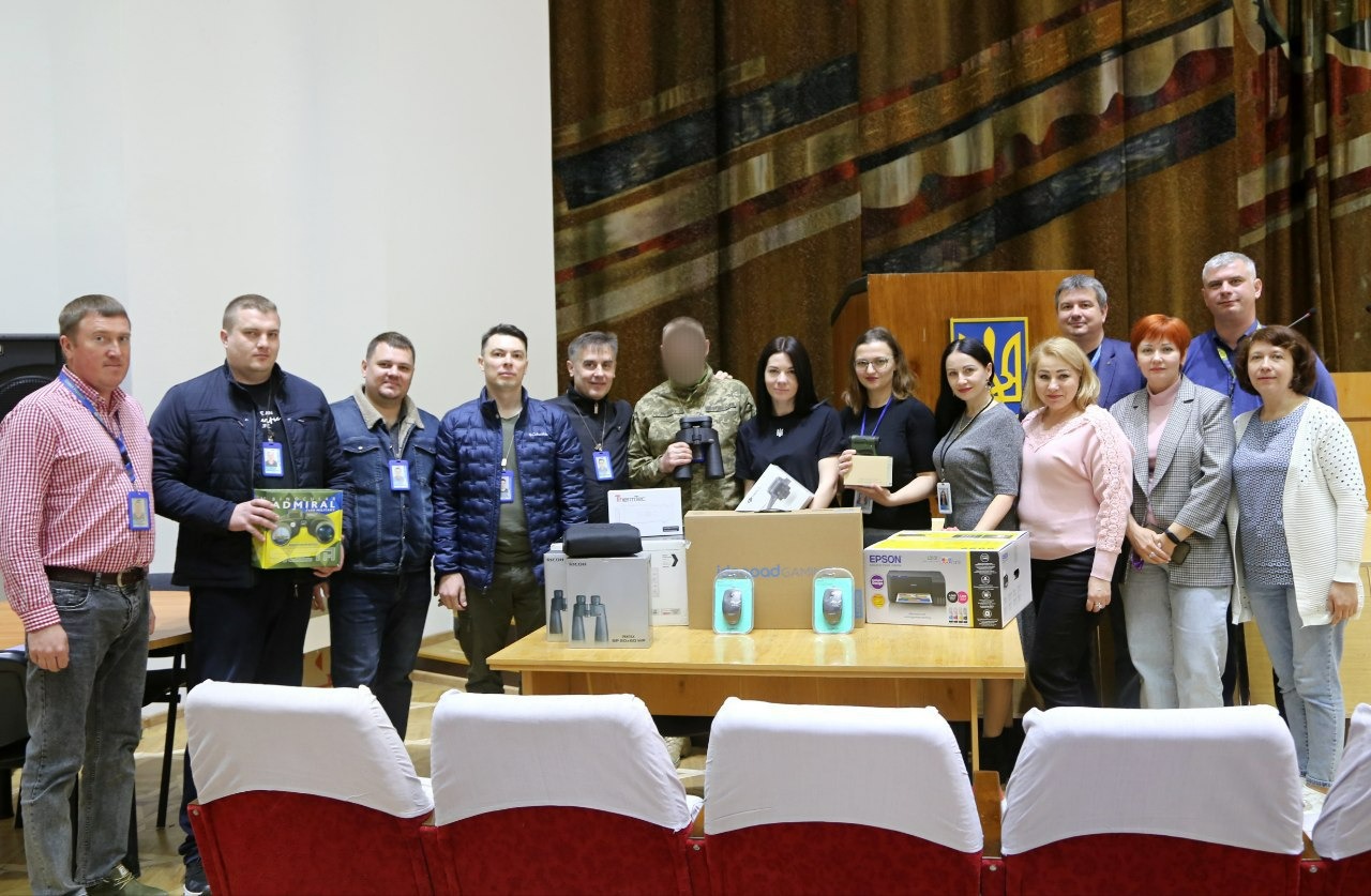 За запитом військових придбали квадрокоптер Mavic 3, лазерний далекомір, 2 ноутбуки, принтер та багатофункціональний пристрій, що включає в себе функції принтера, сканера та ксерокса. На виконання цього замовлення було направлено 215 тис. грн, що надійшли від працівників ПАЕС у рамках акції «Допомога захисникам України». Окрім цього за рахунок цільових коштів профспілкової організації ДП «НАЕК «Енергоатом» для військових придбали якісну оптику - біноклі та тепловізор.