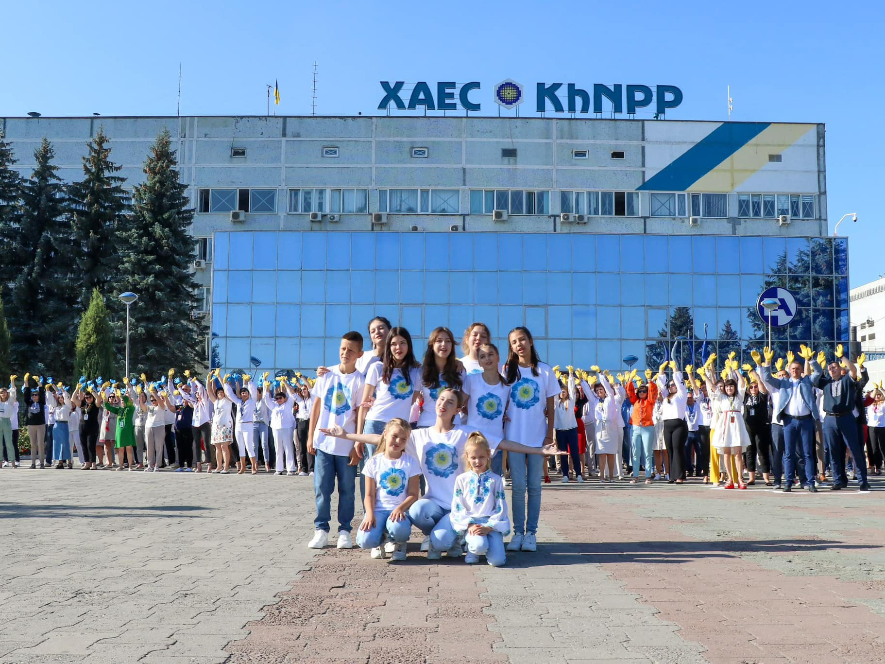Під музичну композицію у виконанні юних солістів нетішинського гурту «Вернісаж» атомники ХАЕС створили живу мапу України у кольорах державного прапора на площі перед адміністративним корпусом Хмельницької АЕС.