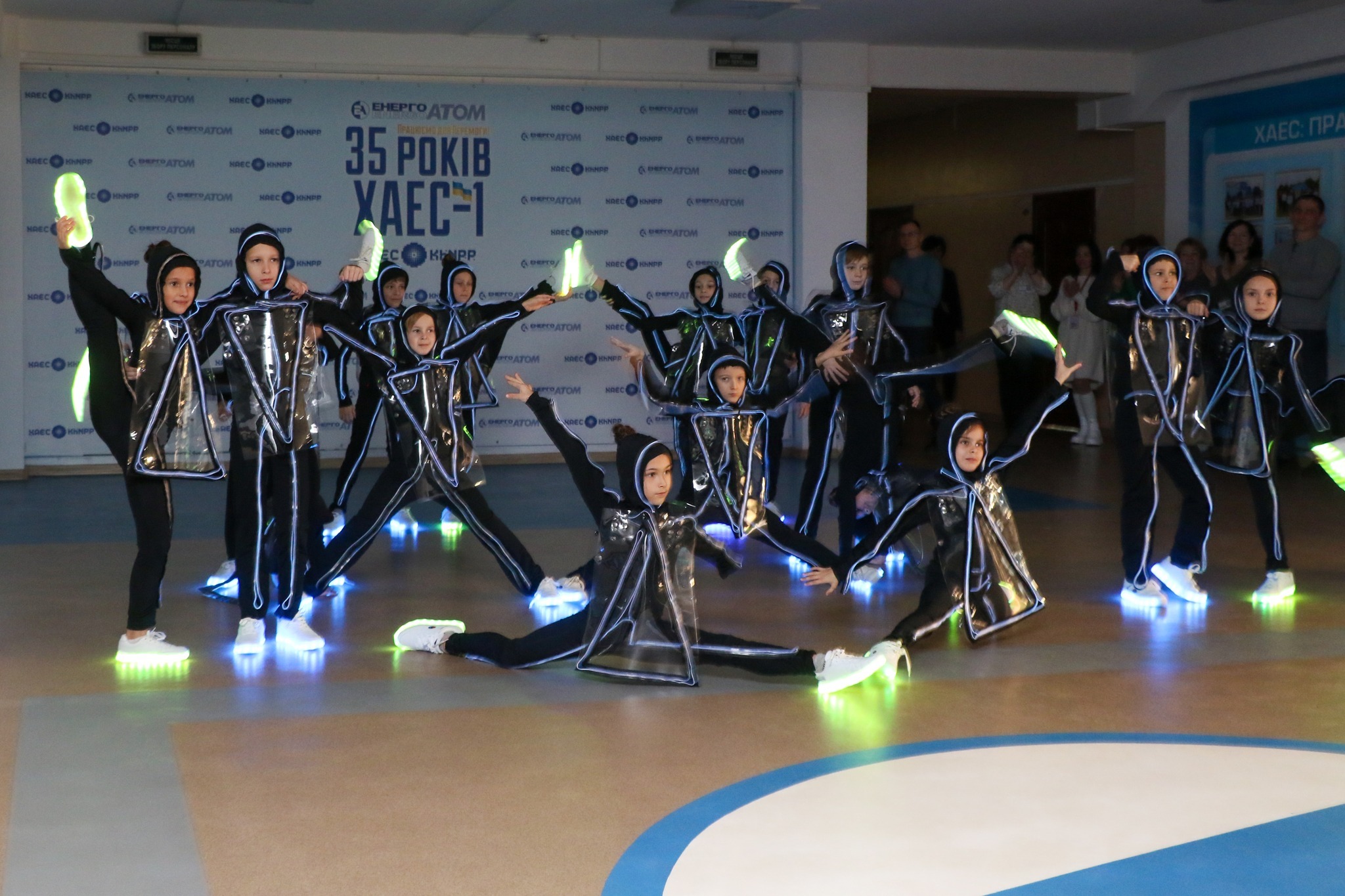 Запальний танець, подарований «шармівцями», зачарував працівників ХАЕС. На знак вдячності від колективу ХАЕС юні танцюристи отримали солодощі.